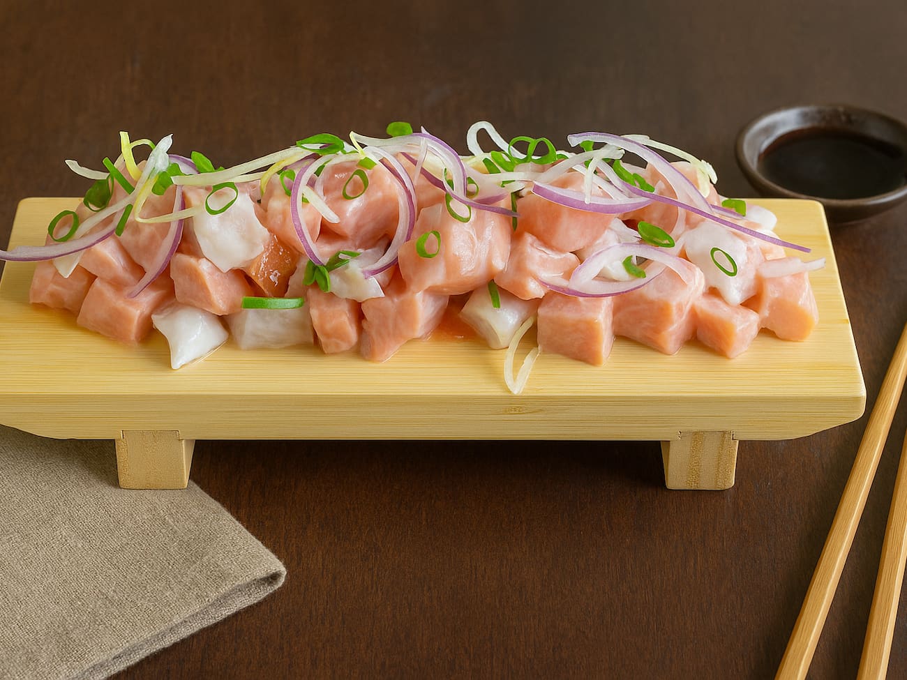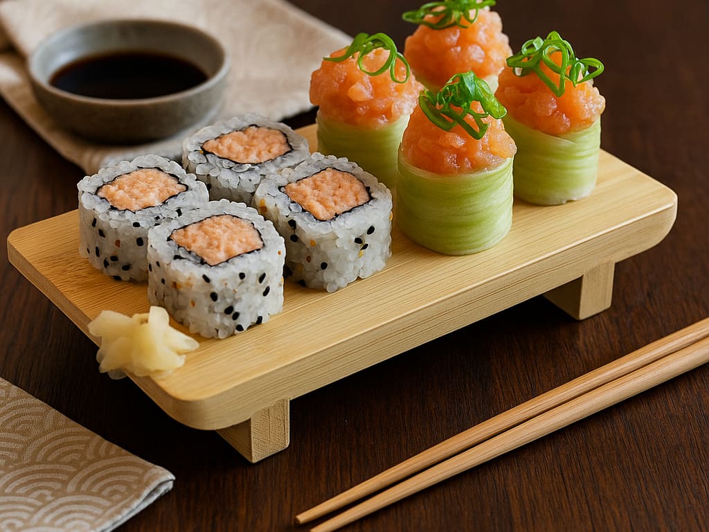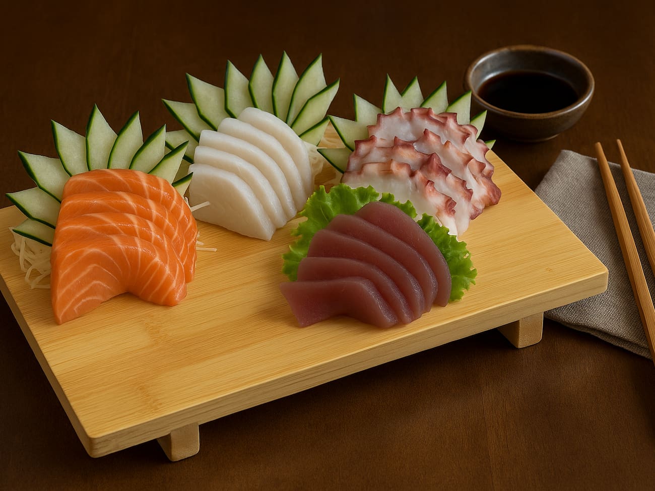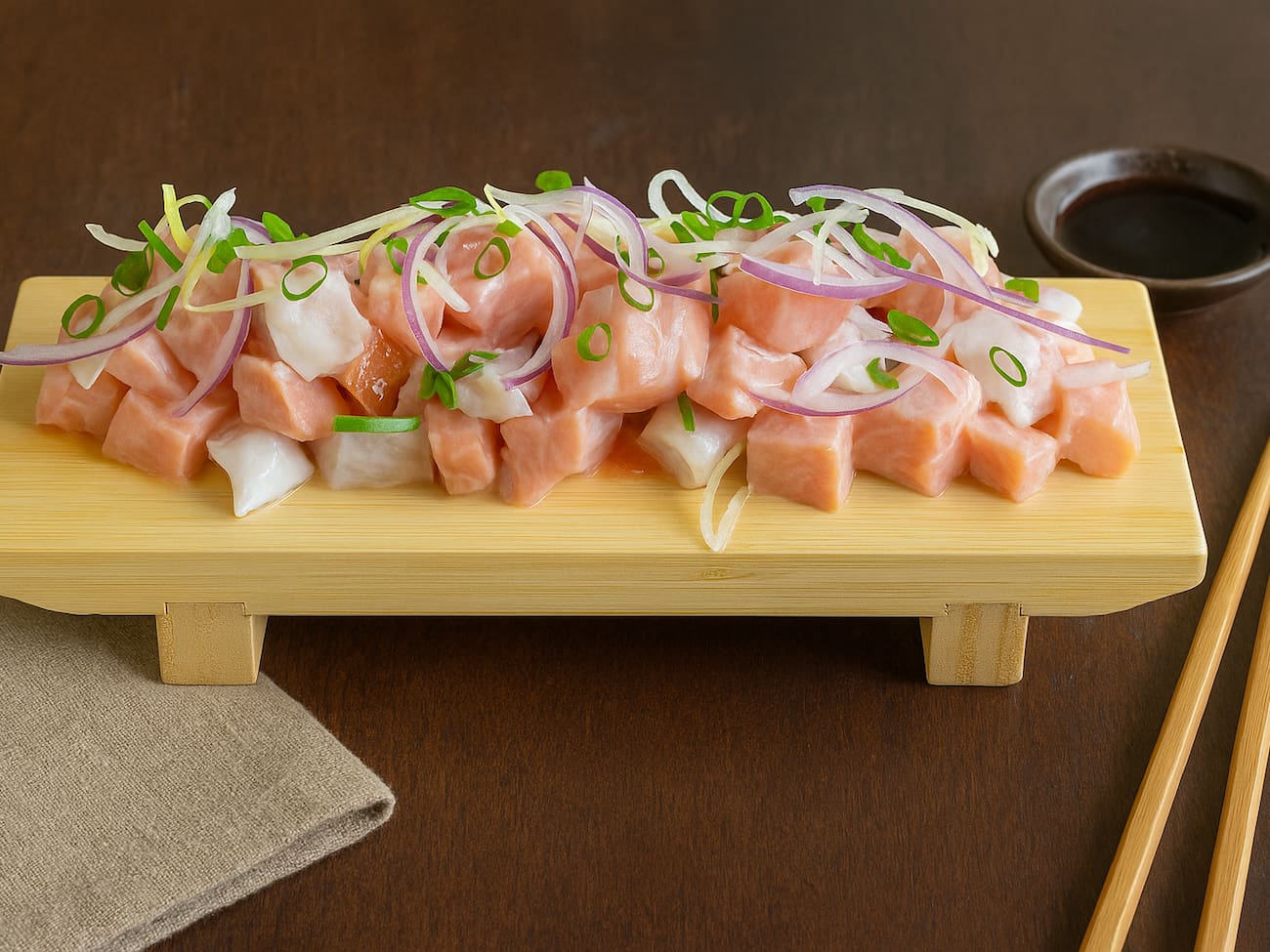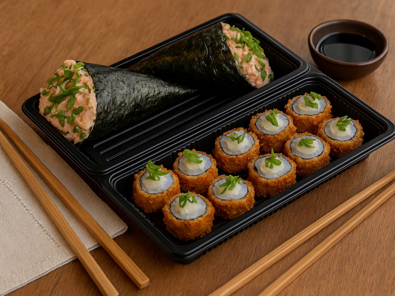 COMBINADO P/ 3 PESSOAS (60 PEÇAS)10 Sashimis de Salmão frescos e suculentos, 5 Sashimis de Atum, de sabor único e vibrante, 6 Sashimis de Peixe Branco delicados e saborosos, 3 Niguiris de Salmão, 3 Niguiris de Atum, 3 Niguiris de Peixe Branco, 3 Niguiris Skin crocantes, 3 Jhou de Salmão, 3 Uramakis de Salmão, 3 Uramakis Skin crocantes, 3 Bateras clássicos, 12 Hot Rolls de Salmão, crocantes e irresistíveis