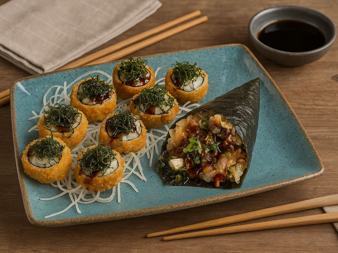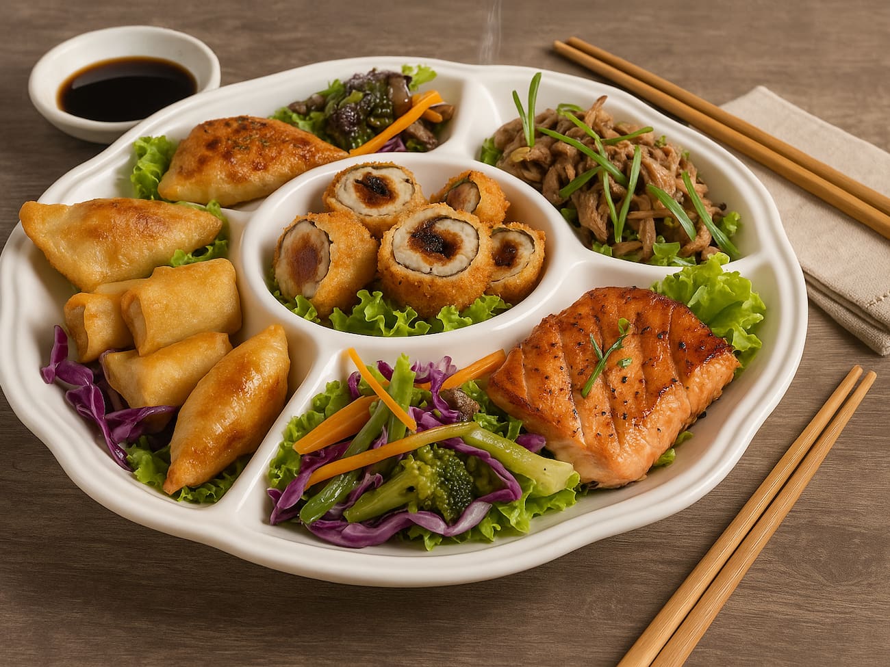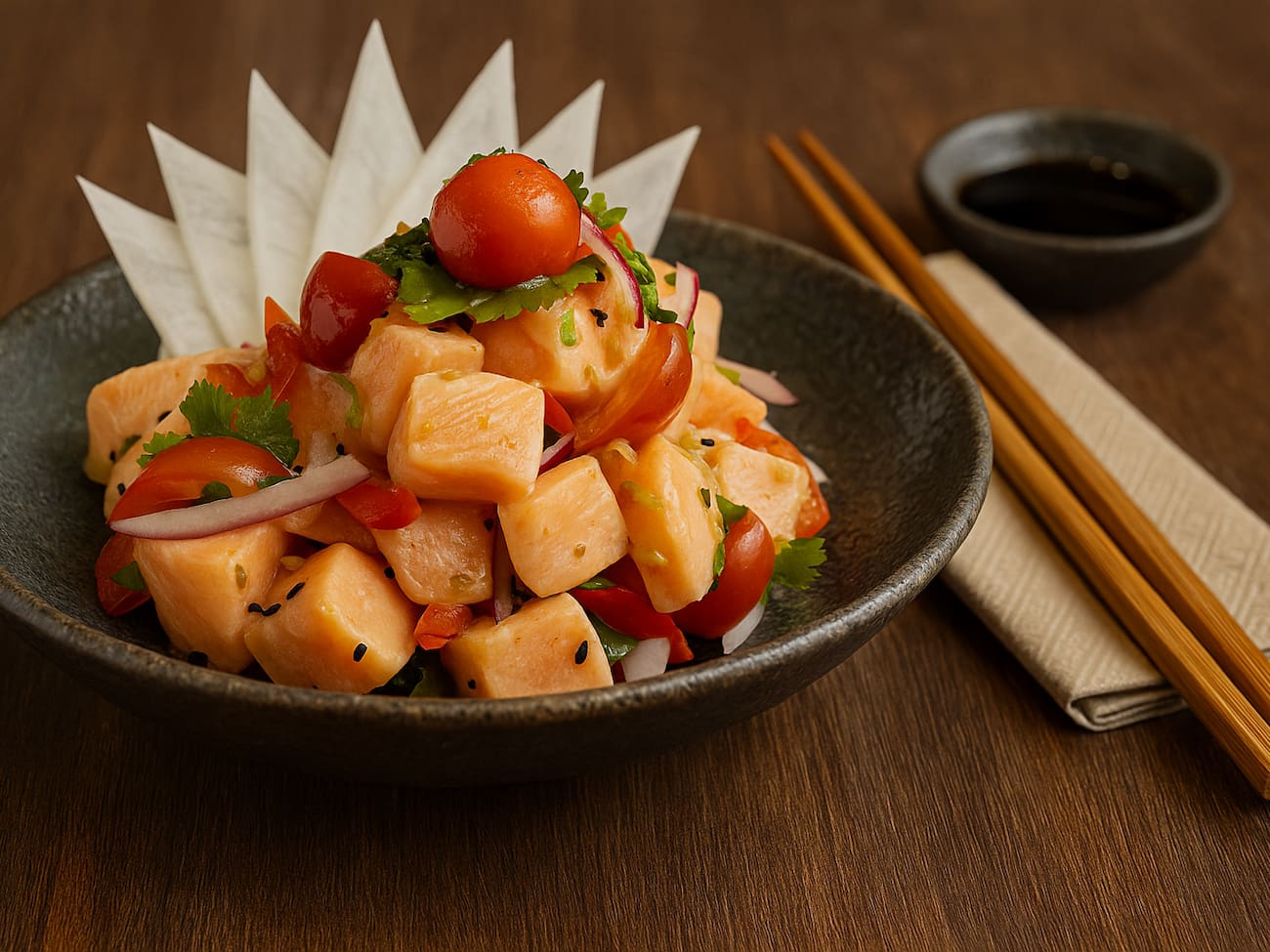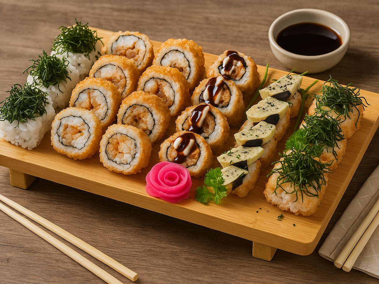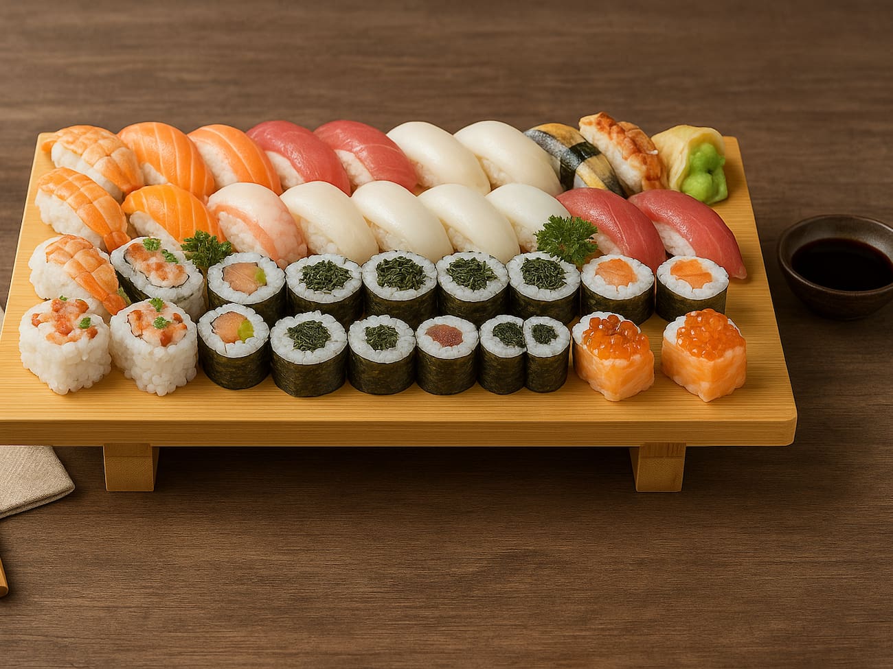 COMBINADO P/ 3 PESSOAS (60 PEÇAS)10 Sashimis de Salmão frescos e suculentos, 5 Sashimis de Atum, de sabor único e vibrante, 6 Sashimis de Peixe Branco delicados e saborosos, 3 Niguiris de Salmão, 3 Niguiris de Atum, 3 Niguiris de Peixe Branco, 3 Niguiris Skin crocantes, 3 Jhou de Salmão, 3 Uramakis de Salmão, 3 Uramakis Skin crocantes, 3 Bateras clássicos, 12 Hot Rolls de Salmão, crocantes e irresistíveis